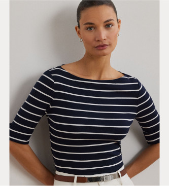 Lauren Ralph Lauren para mujer. 200701085002 Camiseta a rayas marino (L), Azul, Casual, Algodón, Manga 3/4