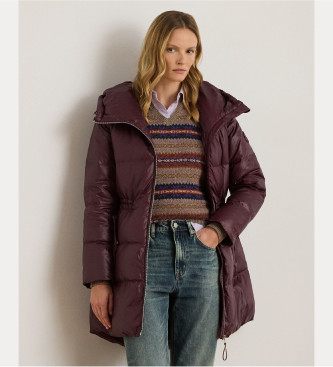 Lauren Ralph Lauren para mujer. 297P04101002 Abrigo de plumón acolchado con capucha burdeos (S), Casual, Poliéster