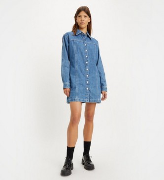 Levi's para mujer. A4585-0001 Vestido Shay azul (S), Casual, Manga larga, Algodón Orgánico, Sostenible