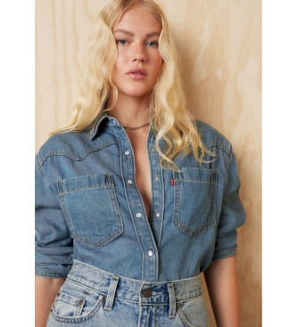 Levi's para mujer. A7244-0006 Camisa Teodora Lightweight Western azul (S), Casual, Denim, Manga larga, Lyocell