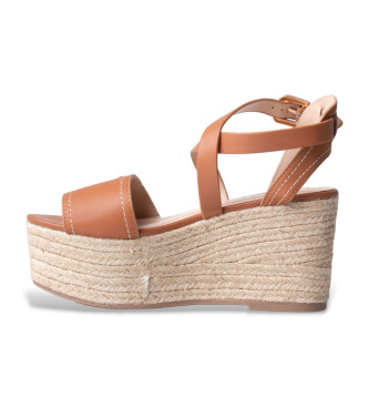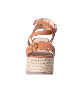 Sandalia de cuña espadrille en tono camel de Guess. Una pieza que captura la esencia del verano mediterráneo combinando la elegancia de las tiras de cuero con la naturalidad de la cuña trenzada de esp...