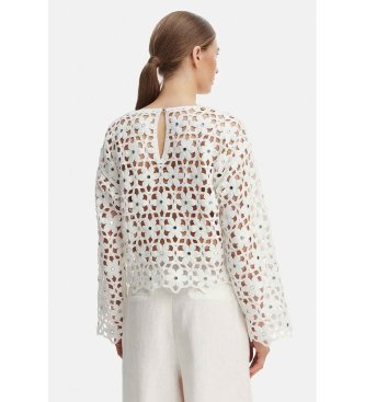 Michael Kors para mujer. MS651ZMKNE Top de encaje blanco (M), Casual, Algodón, Manga larga