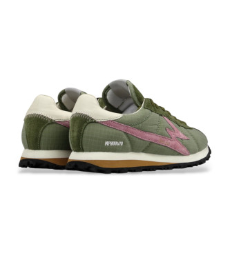 Sneakers unisex de perfil bajo en nylon verde militar, con detalles en ante rosa empolvado y piel en tono off-white. Una mezcla de colores suaves y base neutra para un look desenfadado y actual. Empei...
