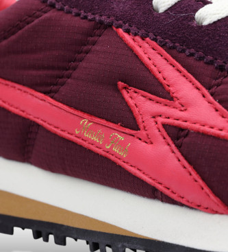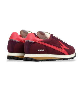 Sneakers unisex de perfil bajo en nylon burdeos con detalles en ante al tono y piel color coral. Un diseño moderno y urbano que combina materiales y texturas con personalidad. Empeine en nylon burdeos...