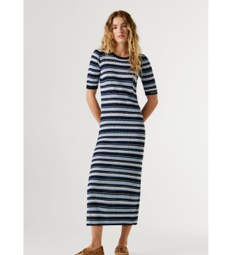 Este vestido largo, pensado para mujeres, destaca por su diseño en canalé que ofrece un ajuste favorecedor y cómodo. Presenta un patrón de rayas en tonos azules, combinando un estilo moderno y versáti...