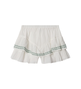 Shorts confeccionados en voile tipo "sushi" que ofrecen una silueta acampanada y una caída ligera y fluida. Presentan un delicado bordado en el yugo que aporta un detalle artesanal sutil. Color predom...