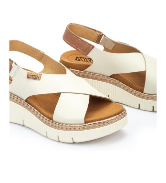 Pikolinos para mujer. W0K-0606C1 Sandalias con cuña de piel Gomera blanco