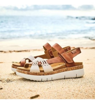 Pikolinos para mujer. W4N-0968C1 Sandalias de piel Palma marrón -Altura cuña 4.5cm-