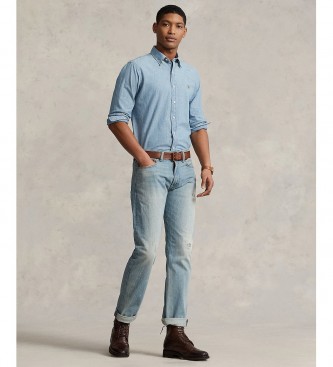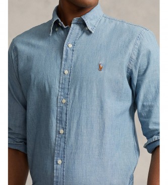 Polo Ralph Lauren para hombre. 710792042001 Camisa Cambray Custom Fit azul (M), Casual, Algodón, Manga larga