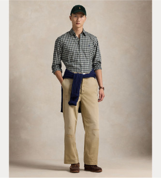 Polo Ralph Lauren para hombre. 710953644007 Camisa de sarga Custom Fit con cuadros marino (L), Casual, Algodón, Manga larga