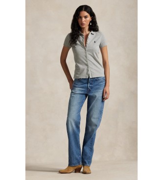 Polo Ralph Lauren para mujer. 211939272003 Polo con tapeta abotonada gris (XXS), Casual, Algodón, Manga corta