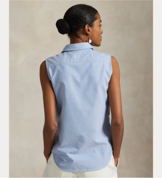 Polo Ralph Lauren para mujer. 211968896002 Camisa sin mangas Oxford azul (S), Algodón, Sin mangas / Tirantes