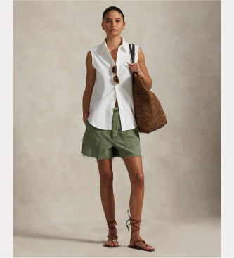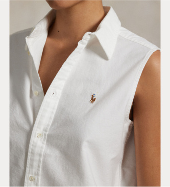 Polo Ralph Lauren para mujer. 211968992001 Camisa sin mangas Oxford blanco (XS), Algodón, Sin mangas / Tirantes