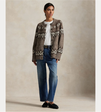 Polo Ralph Lauren para mujer. 211978326001 Cárdigan de mezcla de lana Fair Isle taupe (S), Casual