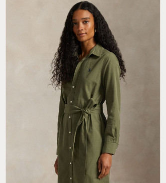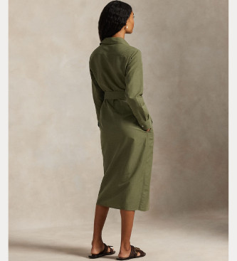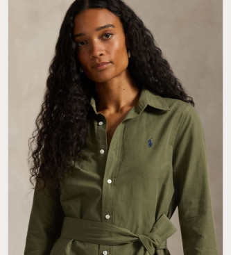 Polo Ralph Lauren para mujer. 211A96346001 Vestido camisero de algodón y lino verde