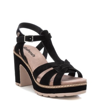 Sandalia de mujer, de la marca Refresh. Fabricada en suave antelina. Pala multitiras unida a la pulsera del tobillo. Cierre mediante hebilla. Cómoda planta acolchada. Tacón de 8 cm con plataforma dela...
