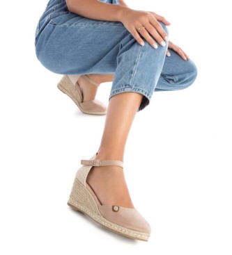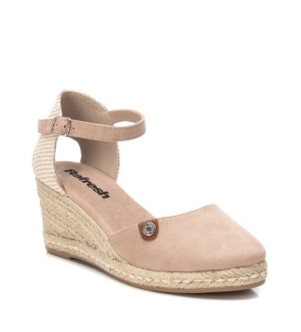Alpargata tipo valenciana de mujer, de la marca Refresh. Fabricada en suave antelina. Pulsera al tobillo con hebilla. Cuña de 6 cm de yute y suela de goma antideslizante. Este modelo ha obtenido el ce...
