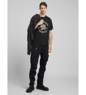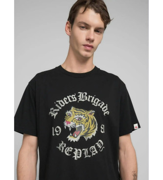 Replay para hombre. M3222.000.2660 Camiseta Tigre estampado negro (XL), Casual, Algodón, Manga corta
