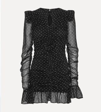 Vestido de manga larga Printed Long-sleeve Dress en color negro, confeccionado en chiffon ligero con estampado de pequeños puntos. Presenta mangas largas transparentes con frunces y puños acampanados,...
