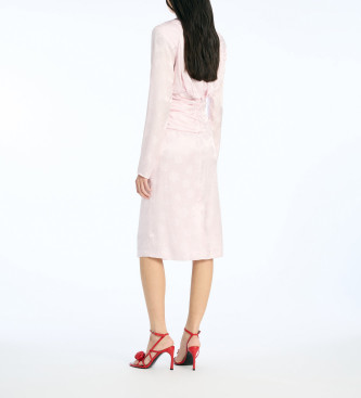 Falda lápiz de Rotate confeccionada en seda con un delicado acabado satinado y sutil motivo floral en jacquard. Su tono rosa suave aporta un aire romántico y elegante, mientras que el corte recto esti...