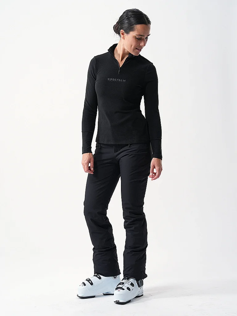 SPORTALM Camiseta interior con cremallera para mujer de tejido polar fino negro