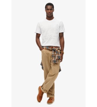 Superdry para hombre. M1012218A Camiseta de corte relajado con relieve Workwear blanco (L), Casual, Algodón, Manga corta
