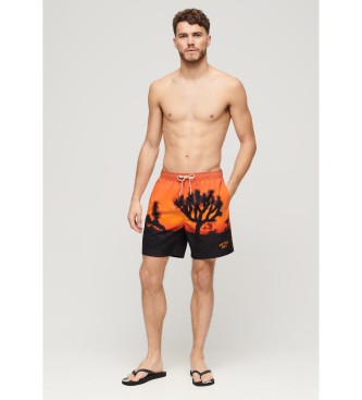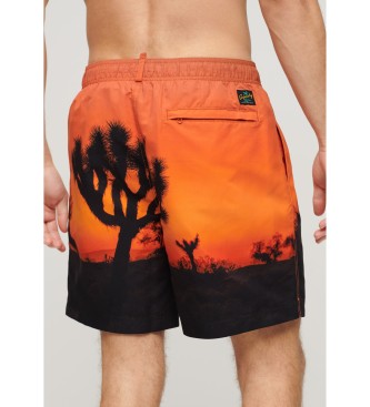 Superdry para hombre. M3010233A Bañador con estampado fotográfico en material reciclado naranja (XXL), Beachwear, Sostenible, Poliéster reci