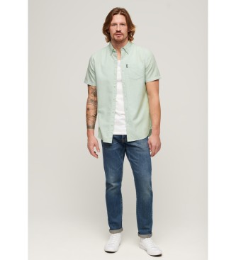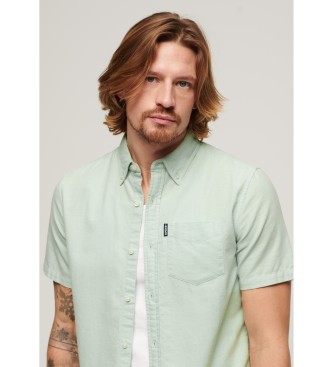 Superdry para hombre. M4010623A Camisa Oxford de manga corta verde (S), Casual, Algodón