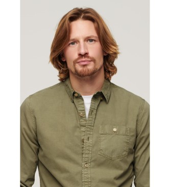 Superdry para hombre. M4010680A Camisa Merchant Store verde (M), Casual, Algodón, Clásico, Manga larga