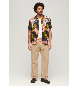 Superdry para hombre. M4010740A Camisa Hawaiian Resort negro (XXL), Casual, Algodón, Manga corta