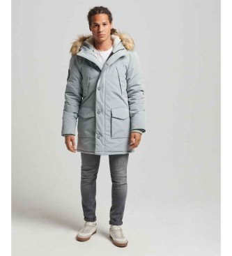 Superdry para hombre. M5011573A Parka con capucha de pelo sintético Everest gris (S), Casual, Poliéster, Sostenible