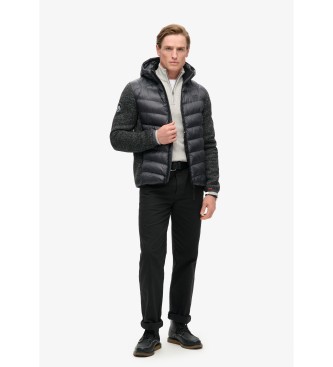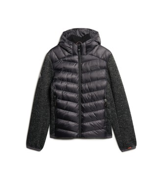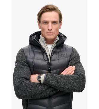 Superdry para hombre. M5012042A Chaqueta híbrida de punto con capucha Storm gris (S), Casual, Poliéster Reciclado, Sostenible