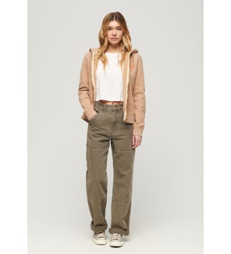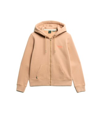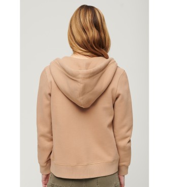 Superdry para mujer. W2012047A Sudadera con capucha, cremallera y logo Essential marrón (L), Casual, Algodón, Manga larga