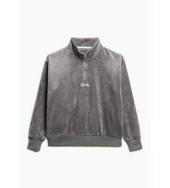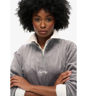 Superdry para mujer. W2012206A Sudadera Country Club de terciopelo gris (S), Casual, Poliéster