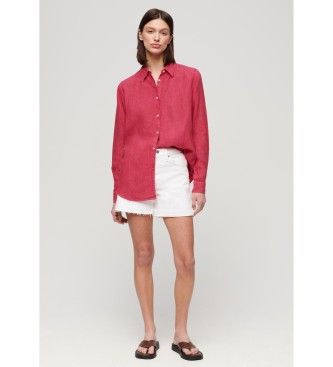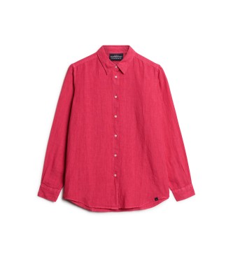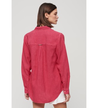 Superdry para mujer. W4010415A Camisa informal de lino con corte boyfriend rosa (M), Casual, Manga larga