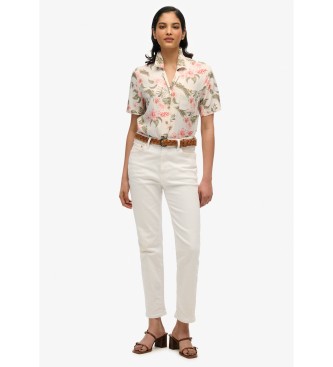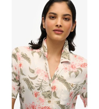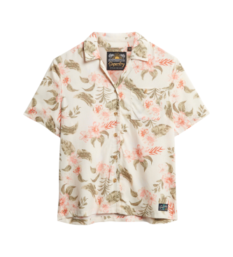 Superdry para mujer. W4010464A Camisa Resort blanco roto (M), Casual, Viscosa, Manga corta