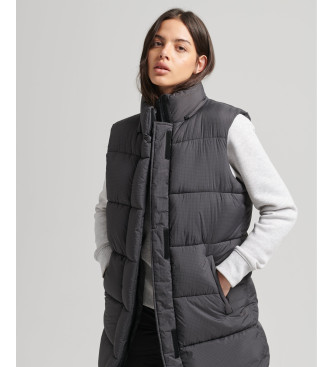 Superdry para mujer. W5011444A Chaleco largo con capucha Ripstop negro (XS), Casual, Poliéster