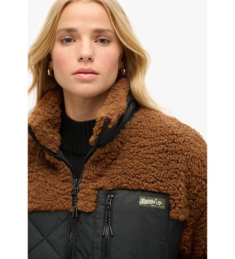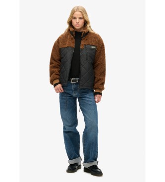 Superdry para mujer. W5011771A Chaqueta híbrida de tejido polar Workwear marrón (XS), Casual, Poliéster, Sostenible