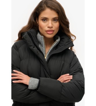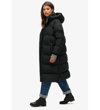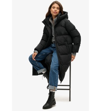 Superdry para mujer. W5011801A Abrigo acolchado largo con capucha negro (L), Casual, Poliéster, Sostenible