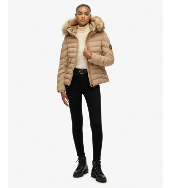 Superdry para mujer. W5012000A Chaqueta Acolchada Fuji con Capucha de Pelo Sintético marrón (XS), Casual, Poliéster