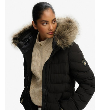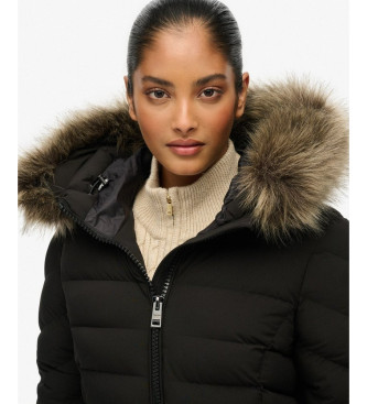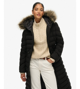 Superdry para mujer. W5012001A Abrigo Fuji faux fur longline negro (S), Casual, Poliéster