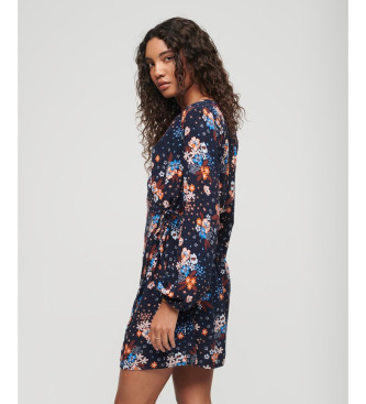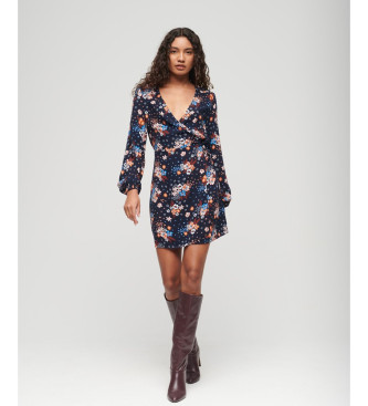 Superdry para mujer. W8011530A Minivestido cruzado con estampado marino (M), Casual, Viscosa, Manga larga