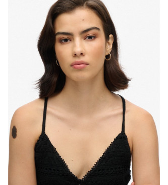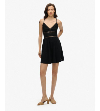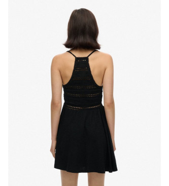 Superdry para mujer. W8011735A Vestido de encaje y punto negro (XL), Casual, Algodón, Sin mangas / Tirantes