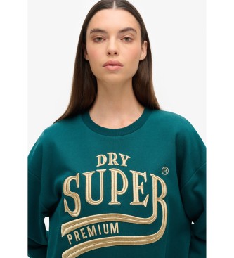 Superdry para mujer. W8011755A Vestido en tejido sudadera con logotipo metalizado Luxe verde (S/M), Casual, Algodón, Manga larga, Sostenible