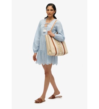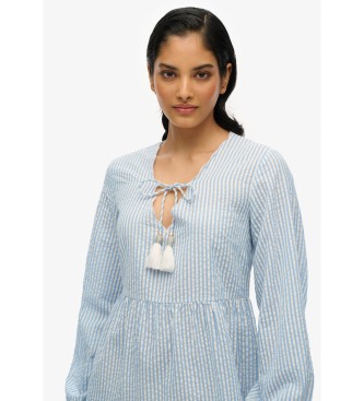 Superdry para mujer. W8011914A Minivestido escalonado con bordado azul (L), Casual, Algodón, Manga larga