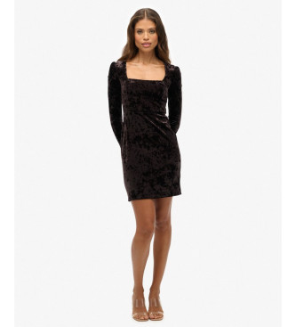 Este vestido es una versión sofisticada del clásico diseño de fiesta. Confeccionado en un lujoso terciopelo arrugado, realza la figura con su silueta ajustada y su favorecedor cuello cuadrado. Los hom...