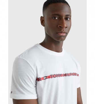 Tommy Hilfiger para hombre. UM0UM01915 Camiseta con Raya Horizontal y Logo blanco (S), Casual, Algodón, Manga corta, Lyocell
