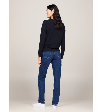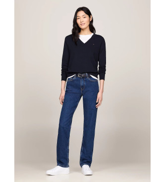 Tommy Hilfiger para mujer. WW0WW42049 Jersey Heritage con cuello de pico marino (XXS), Casual, Manga larga, Algodón Orgánico, Sostenible