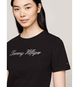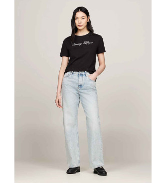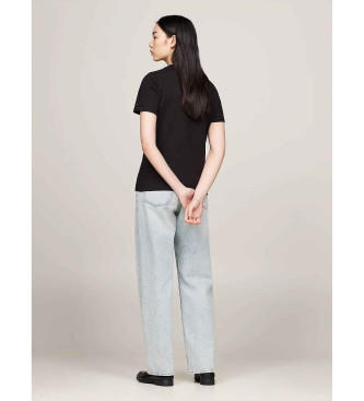 Tommy Hilfiger para mujer. WW0WW43459 Camiseta con logo negro (L), Casual, Manga corta, Algodón Orgánico, Sostenible