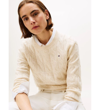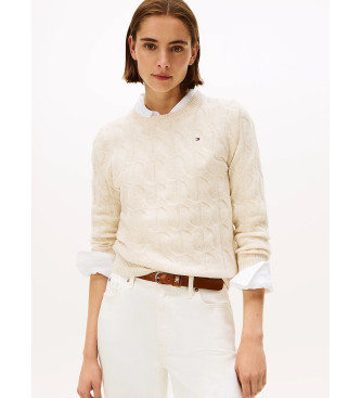 Tommy Hilfiger para mujer. WW0WW43586 Jersey de punto trenzado en lana suave beige (S), Casual